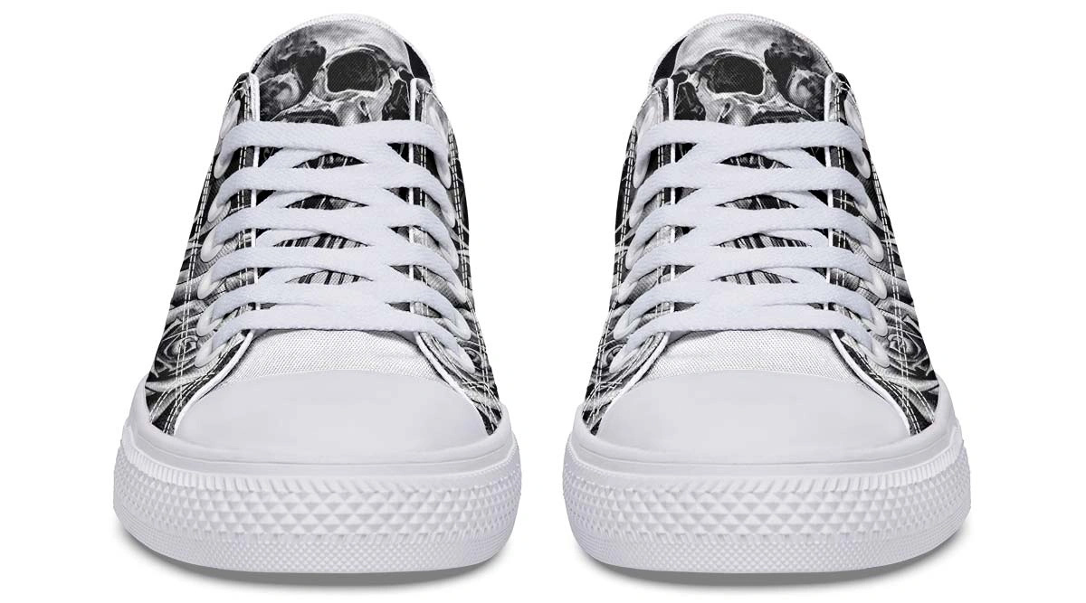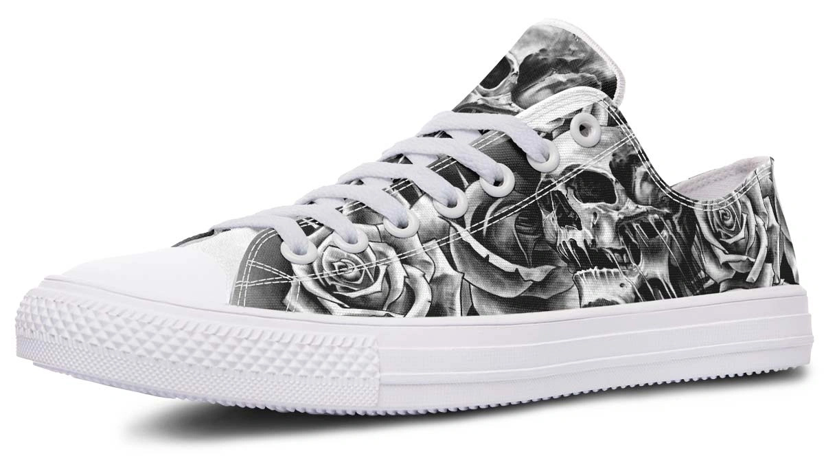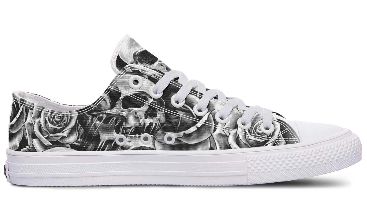 Black & White Skull and Rose Pattern Low-Top Sneakers