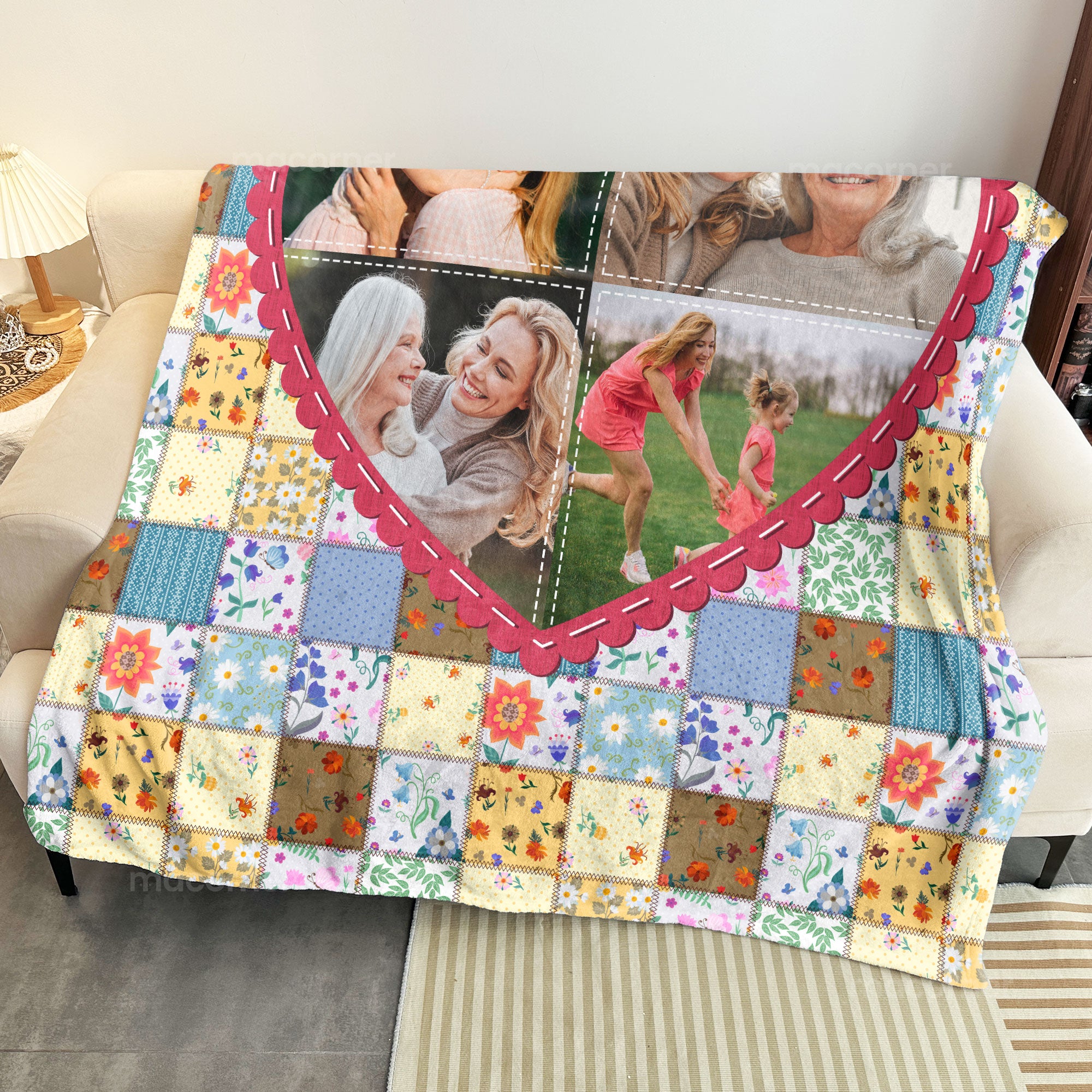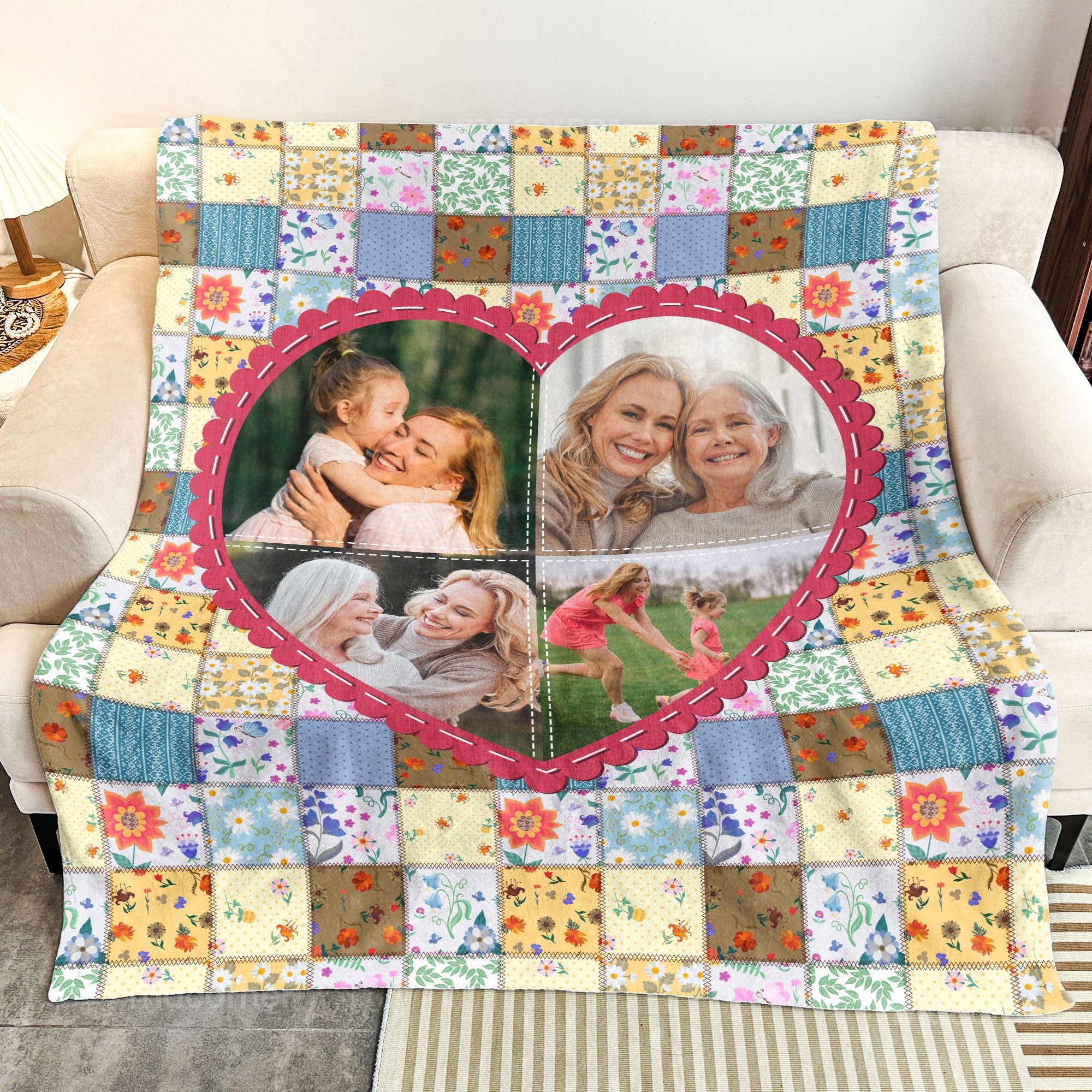 Celebrate family love with our Personalized Photo Blanket, featuring the heartwarming message “Each patch tells a story, all stitched with love.” This cozy blanket allows you to customize each patch to represent your family members, making it a unique and meaningful gift. Whether it’s from parents to children or from son or daughter to mom and dad, this quilt-style blanket is a beautiful way to honor family connections.