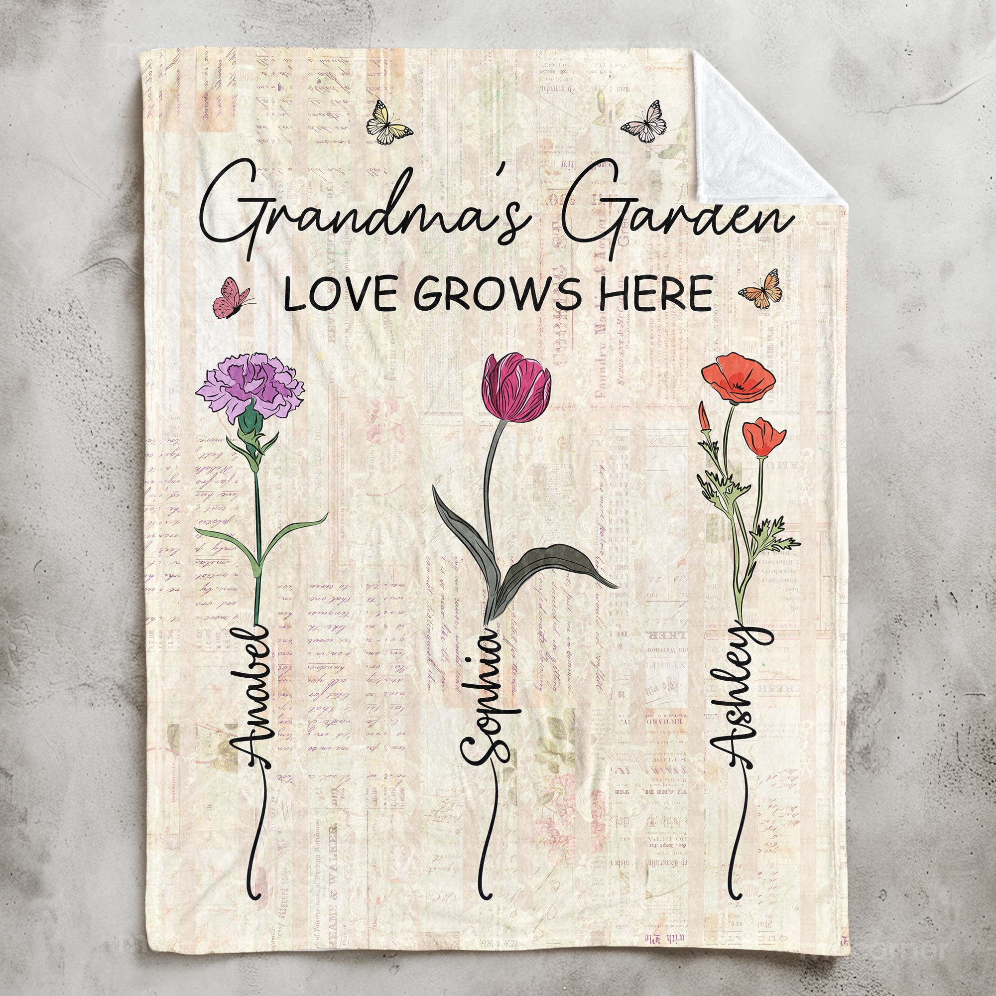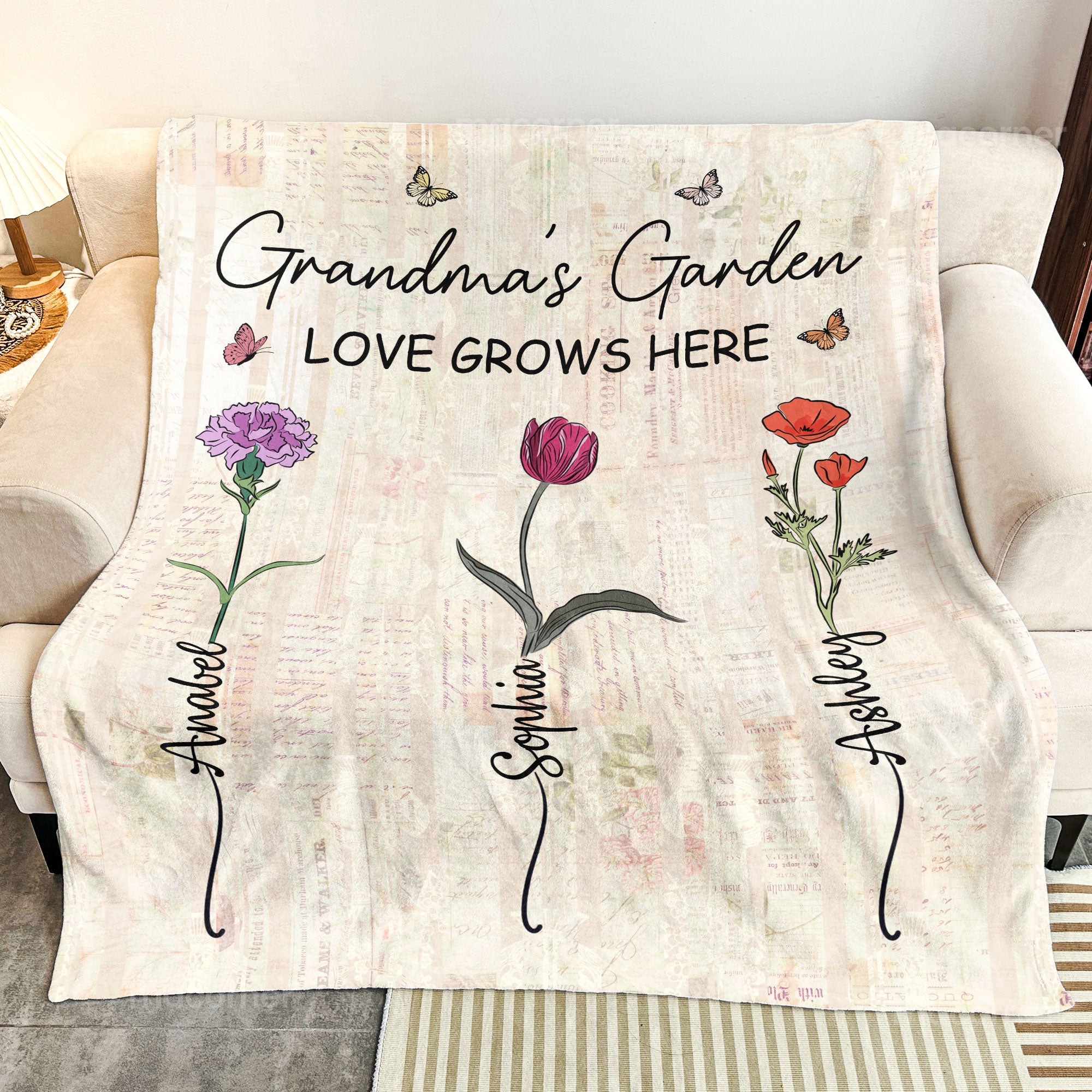 This personalized blanket with flowers and custom names is an excellent Christmas or Mother’s Day gift. It is also a perfect gift for a new grandma or a cute way to announce the baby’s arrival by showing the addition to the family tree. This blanket is sure to bring a smile to the recipient and become a cherished part of their memories.