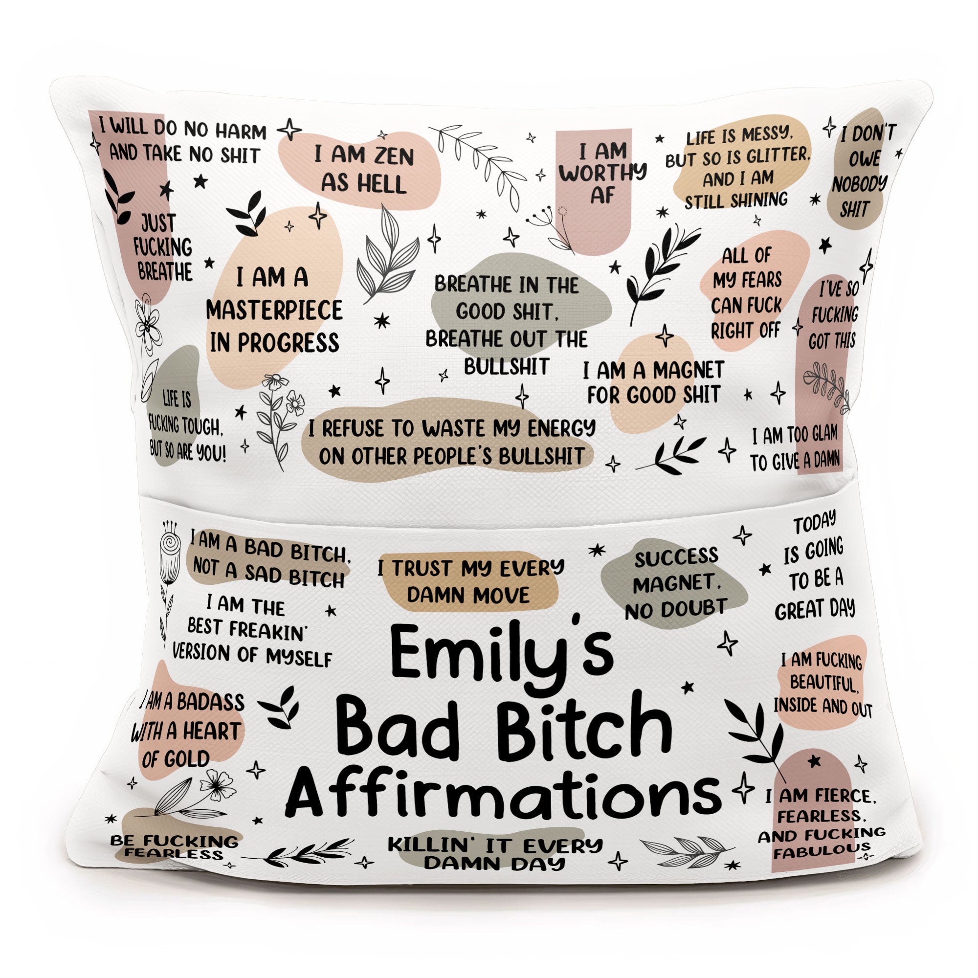 Cozy up with the My Badass Affirmations Personalized Pillow—the perfect self-gift or thoughtful surprise for your daughter, friends, or anyone who needs a reminder of their awesomeness! Featuring empowering affirmations and a stylish design, this pillow adds comfort and confidence to any space. Great for birthdays, Christmas, or just because, this personalized pillow (insert included) is a fun and inspiring way to celebrate yourself or someone you love!