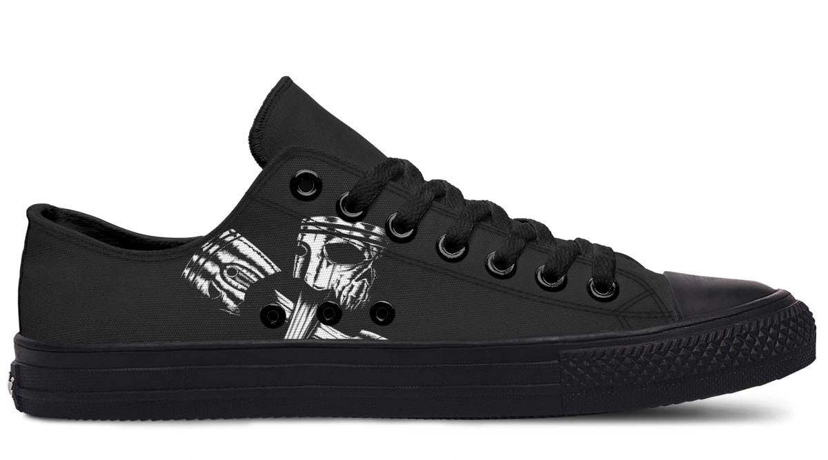 Rev up your style with Skull Engine Motor Black Low-Top Sneakers. Edgy, comfortable, and durable footwear perfect for everyday wear and biker aesthetics.