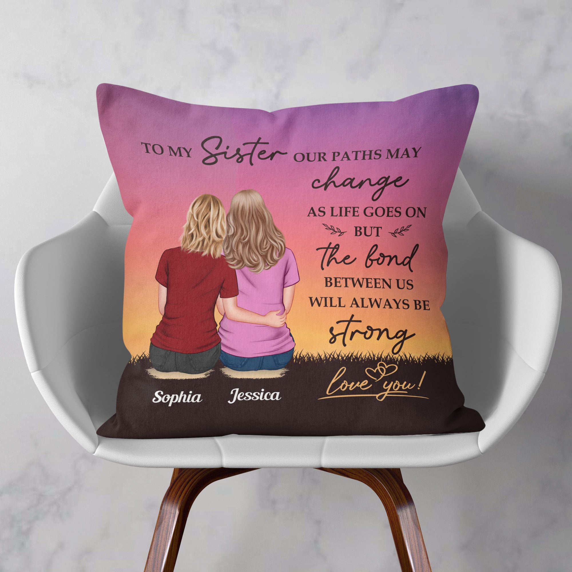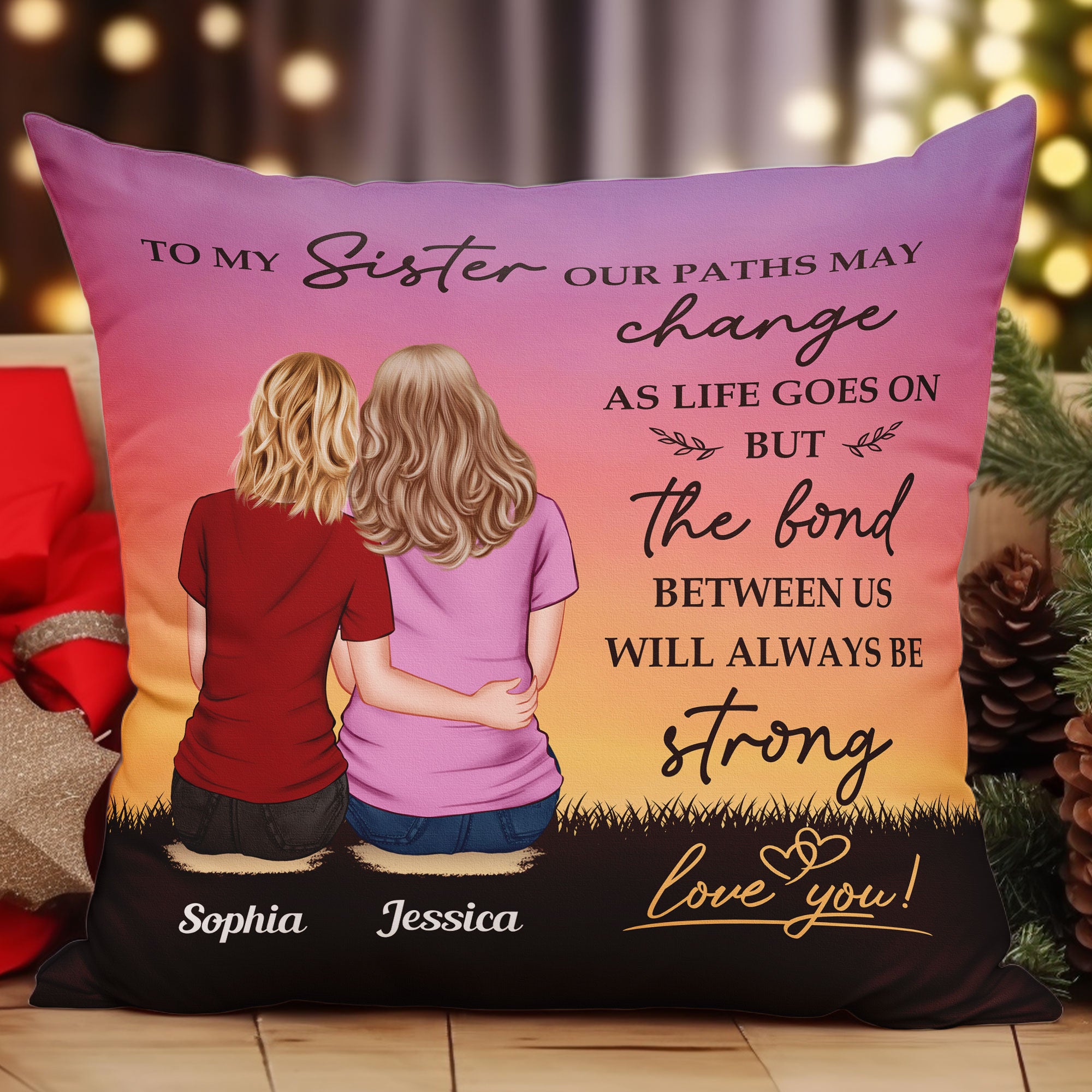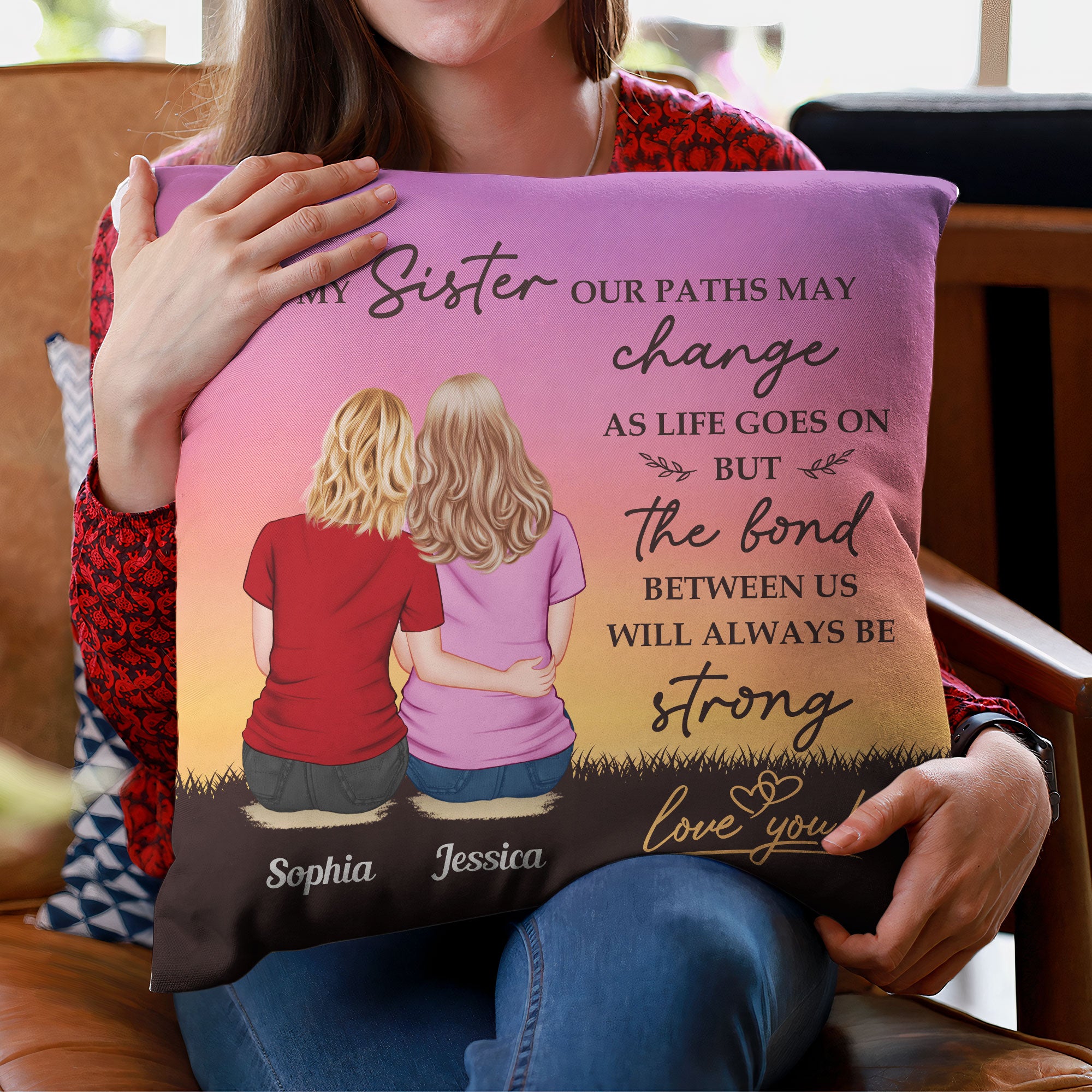 This personalized pillow is a heartfelt gift for sisters and siblings who mean the world to each other. Perfect for birthdays, Christmas, or any special occasion, this cozy pillow can be customized with her name, designs that reflects your unique bond. Not only is it soft and comfortable, ideal for lounging and relaxing, but it also adds a stylish and sentimental touch to her favorite space. This pillow will bring her comfort and warmth while celebrating the memories you share. Every time she sees it, she’ll be reminded of the love and connection that makes your relationship so special. It’s more than a gift—it’s a piece of home that brings you closer, no matter the distance.