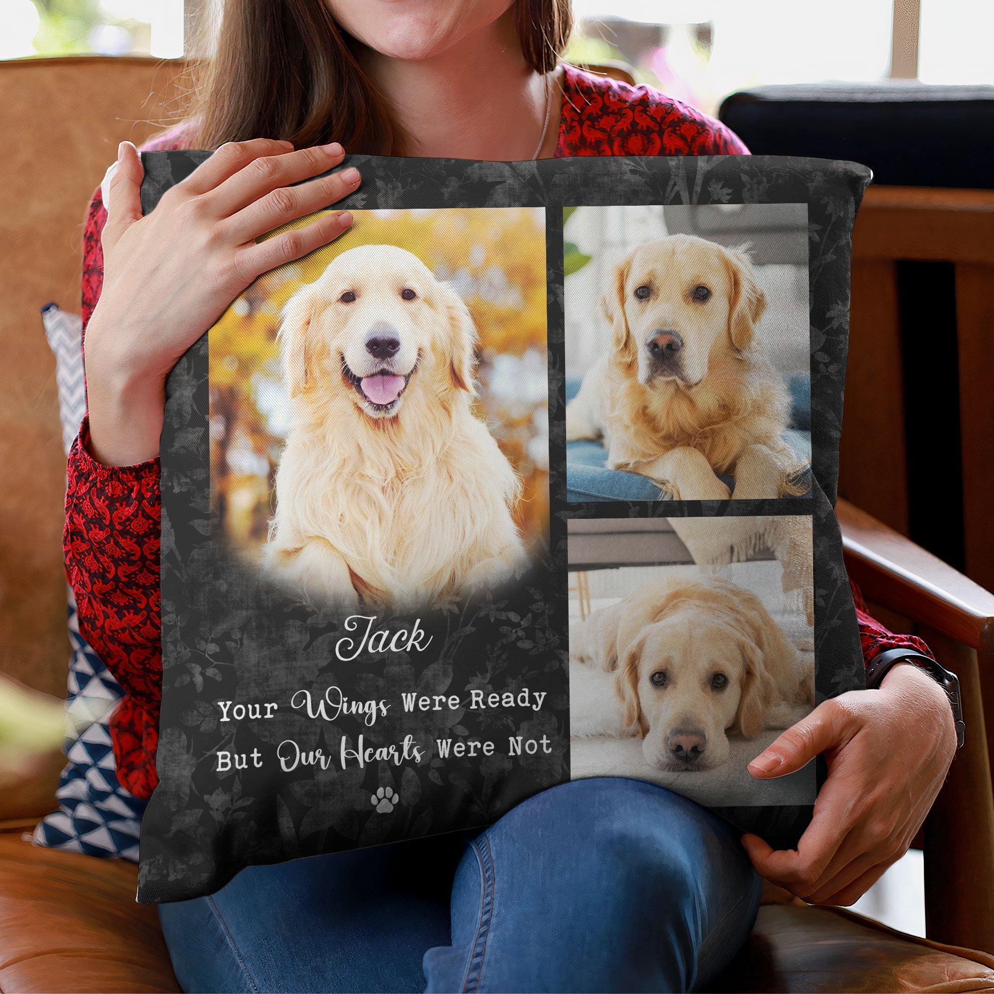This personalized pillow is a loving way to remember a beloved pet that has passed away.